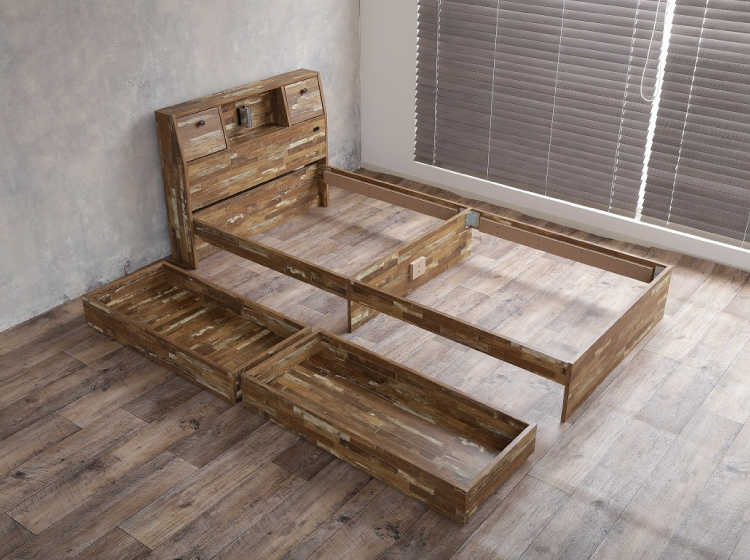 ※ベッドのフレームはスプリングマットレス使用時の基準で強度計算されております。そのため、床板に直接布団等を敷いてご利用になりますと破損の原因となる場合があり、大変危険です。こちらの商品のフレームをご使用になる場合は、床板の上に必ずスプリングマットレスを敷いてご利用くださいますよう、お願い申し上げます。