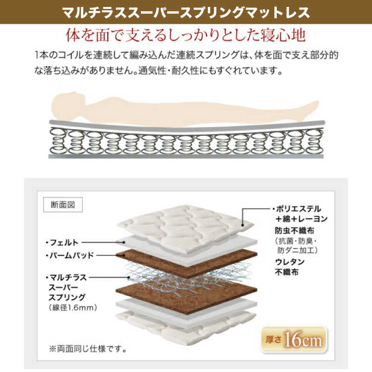マルチラススーパースプリングマット…高さ16cm(コイル数1188)材質 化粧繊維板 構造仕様 お客様で組み立てていただく商品です