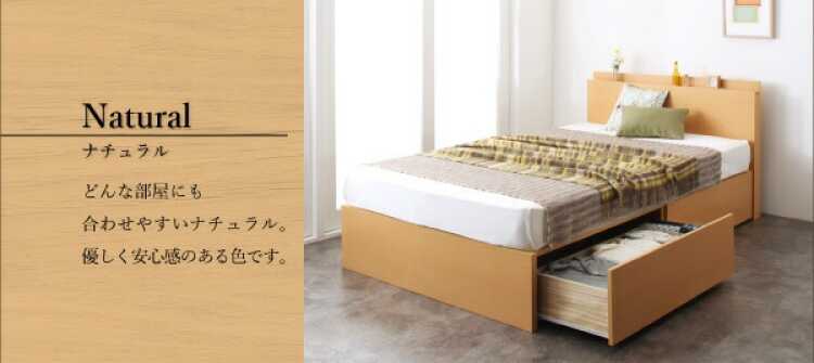 布団が使える頑丈設計すのこダブルベッド日本製(床下収納付・電源コンセント・ナチュラル色)