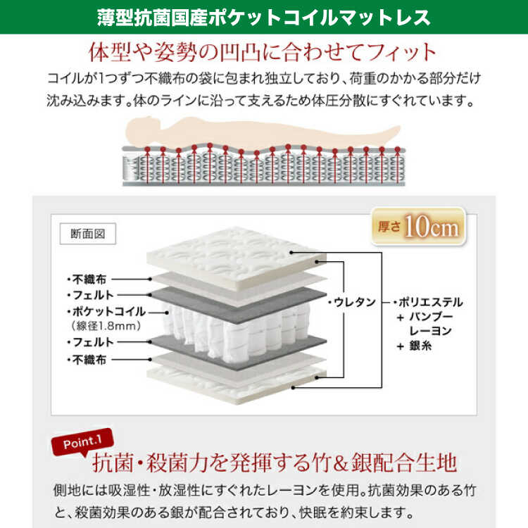 薄型抗菌国産ポケットコイルマット…高さ10cm(コイル数600)