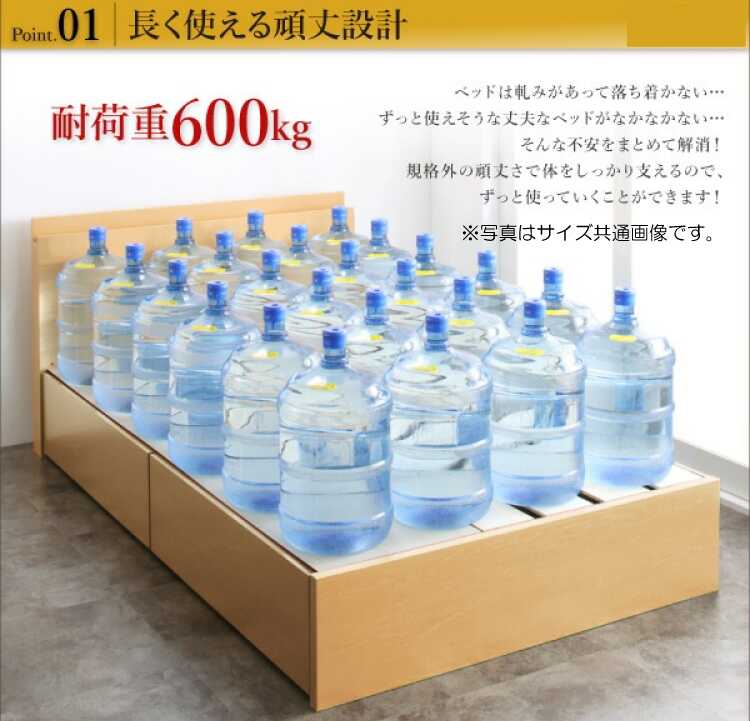 耐荷重約600kg注意事項 ※写真はサイズ共通画像です。本ページはダブルベッド・ナチュラル色の販売です。小物等は付属しません。