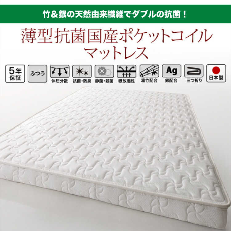 ④薄型抗菌国産ポケットコイルマットレス付き