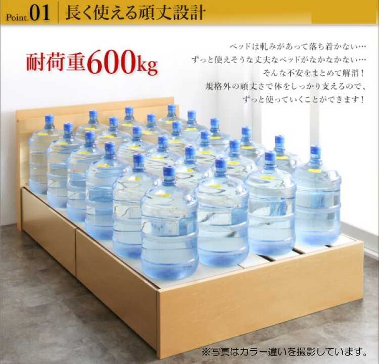 耐荷重約600kg注意事項 ※写真はサイズ共通画像です。本ページはダブルベッド・ホワイト色の販売です。小物等は付属しません。