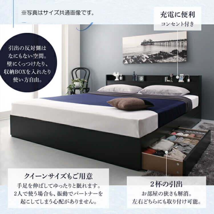 引き出し2杯付き(左右入れ替え可能)注意事項 ※写真はサイズ共通画像です。本ページはダブルベッドの販売です。小物等は付属しません。