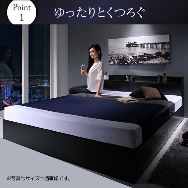 BE-3332 スタイリッシュなブラックのダブルベッド(棚・電源コンセント・床下収納付き)※写真はサイズ共通画像です。