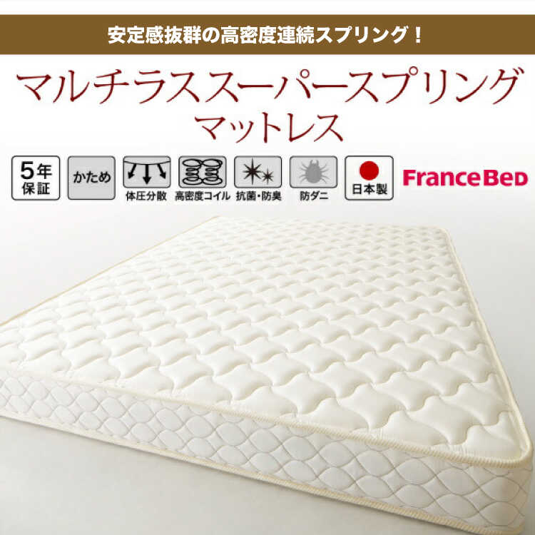 老舗ベッドメーカー「フランスベッド」の日本製マットレス。日本人の体格や骨格を考慮し開発された日本人のためのスプリング。コイル数が多くかための寝心地で沈み込まず安定した寝姿勢を維持できます。お子様も安心して使える低ホルムアルビデド仕様です。