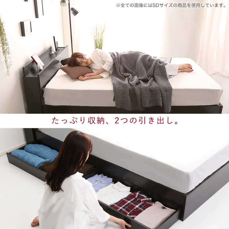 仕様補足 抗菌・防臭機能付き、2口コンセント、引き出し付き(2杯) 注意事項 ※本ページはダブルベッド単品の販売です。小物等は付属しません。