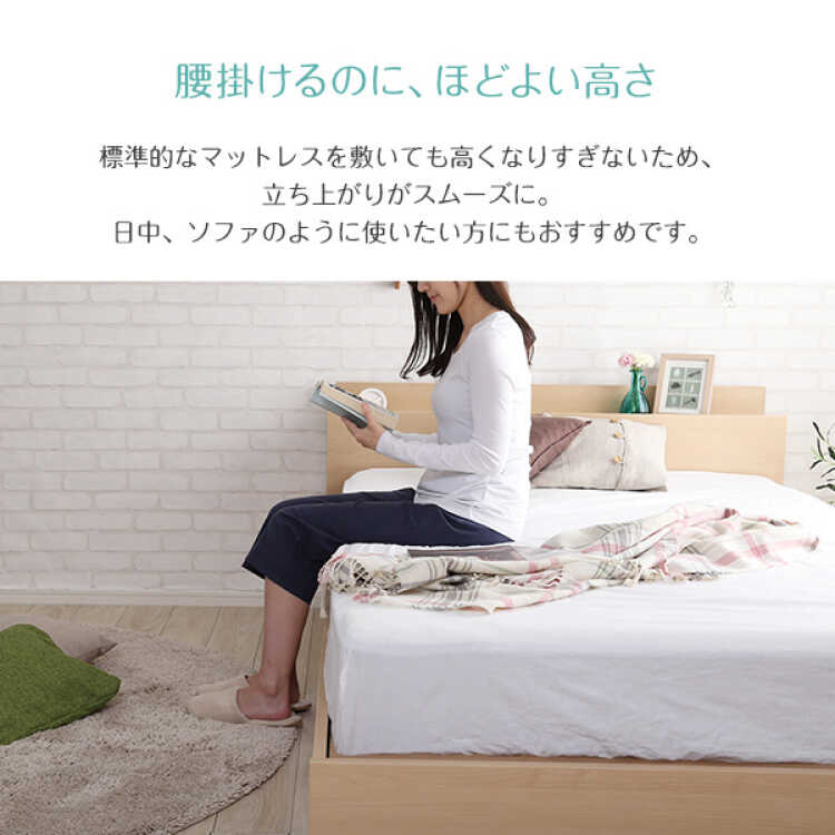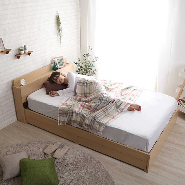 抗菌&防臭機能付きダブルベッド(床下収納・宮棚・電源コンセント付き・ナチュラル色)
