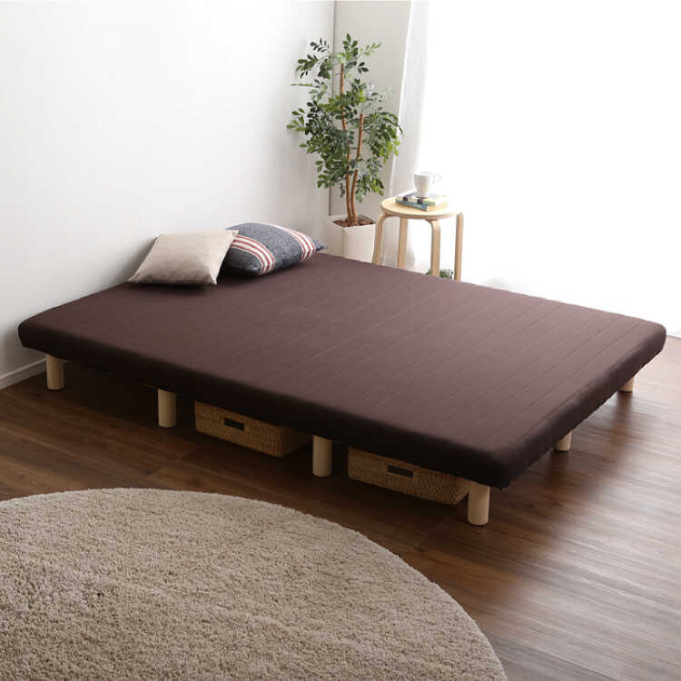 複数台並べて広く使える脚付きマットレス。ヘッドボードやフレームがないシンプルなフォルムなのでダブル+シングル、ダブル+セミダブルなど2台並べて使用することができます。(※固定はできません。)家族で一緒に使用したり、将来家族が増える場合も対応できるので便利です。もちろん単品使いも可能。カップルや新婚さんなど大人2人で使えるダブルサイズです。カラーは飽きが来にくい定番のブラウン色。高級感があり落ち着いた空間を演出します。