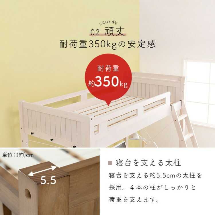 白ホワイトウォッシュ色のすのこロフトベッドならインテリアル