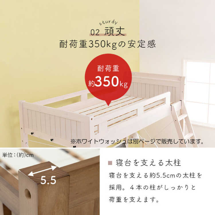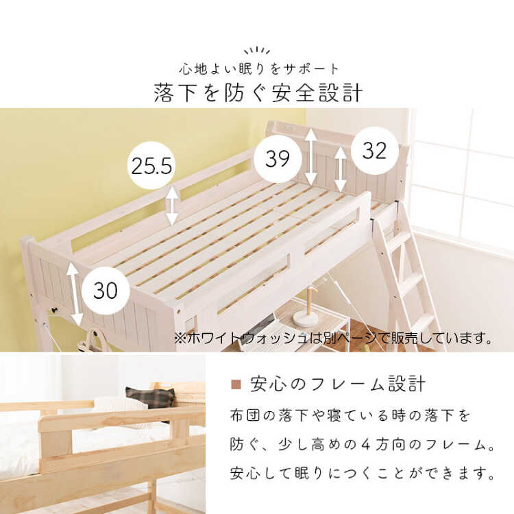 お子様のベッドデビューにおすすめな北欧ナチュラル風の頑丈なすのこロフトベッド。