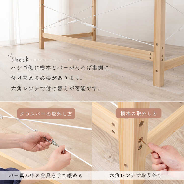 はしごは4方向で付け替えができるので模様替えや引越しでレイアウトが変わっても長く使えます。