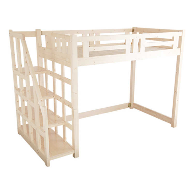 階段付きロフトベッド(シングル・天然木製パイン材・すのこ通気性抜群・ホワイトウォッシュ色)