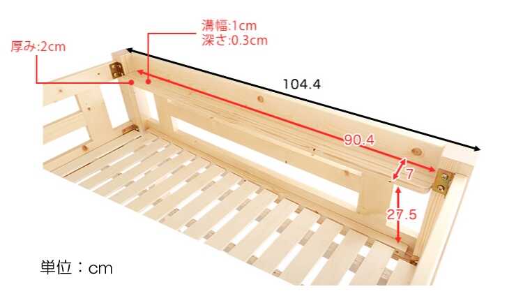 (4-4)幅104.5cm、奥行102.5cm、高さ6.5cm材質 本体:天然木(パイン材)、すのこ:天然木化粧合板(LVL)