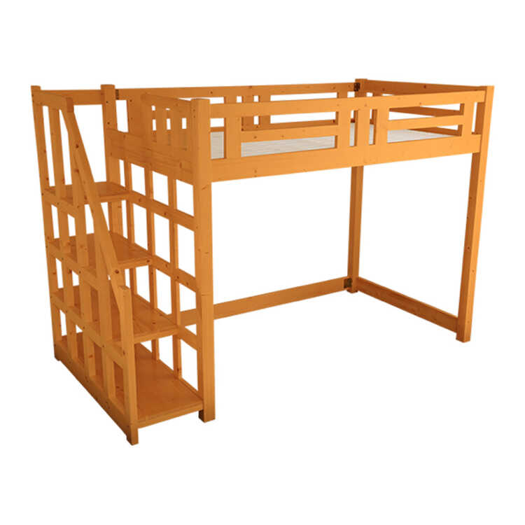 階段付きロフトベッド(シングル・天然木製パイン材・すのこ通気性抜群・ライトブラウン色)