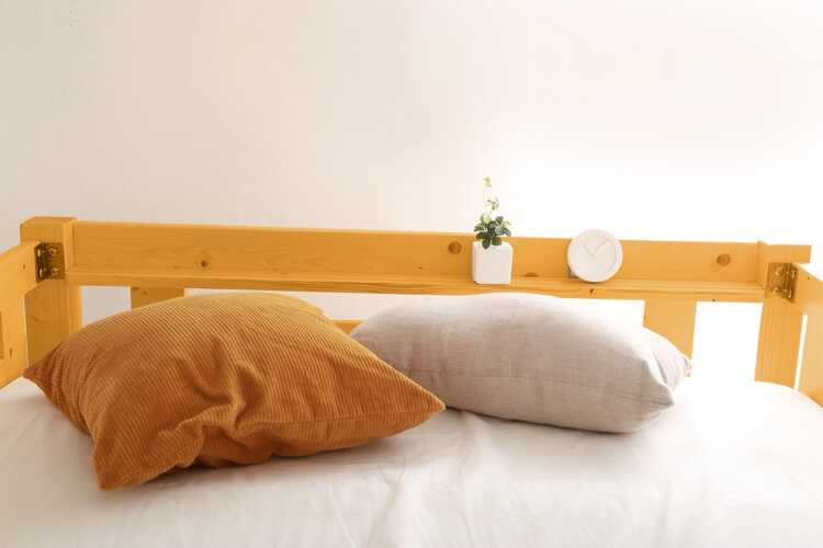 床板は板と板の間に隙間が設けられたすのこを採用。すのこは格子状になっているため布団にこもりがちな湿気を外に逃がしてくれ、カビの発生を抑えてくれます。ジメジメした梅雨の季節や冬場の結露にも、すのこ床なら心配なく、一年中快適にお過ごしいただけます。さらに、使用しているすのこは乾燥による収縮・反り・割れが起こりにくい強度が高いLVL材を使用しているため、耐震性・耐久性に優れており安心です。