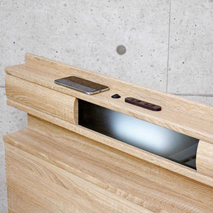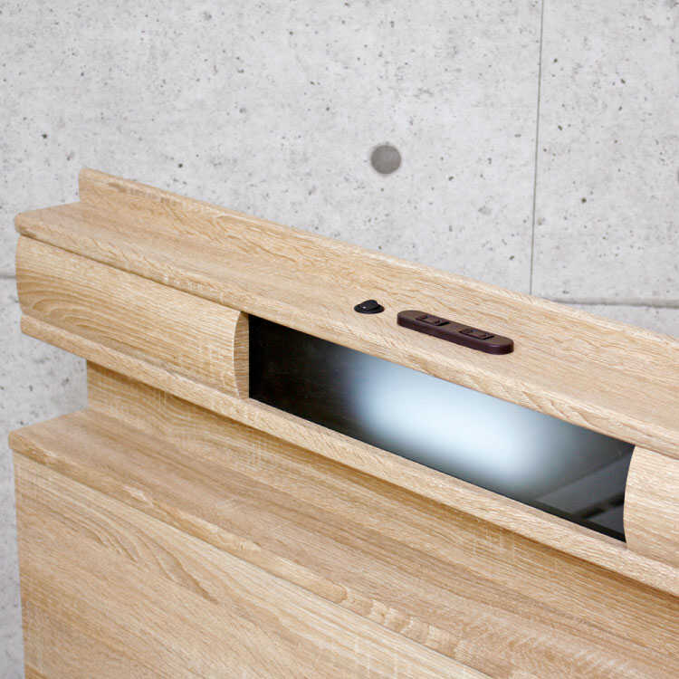 ヘッドボードにはLED照明付き、枕元を優しく照らしてくれます。