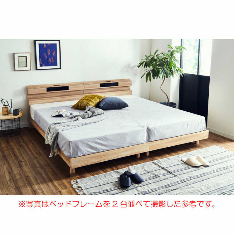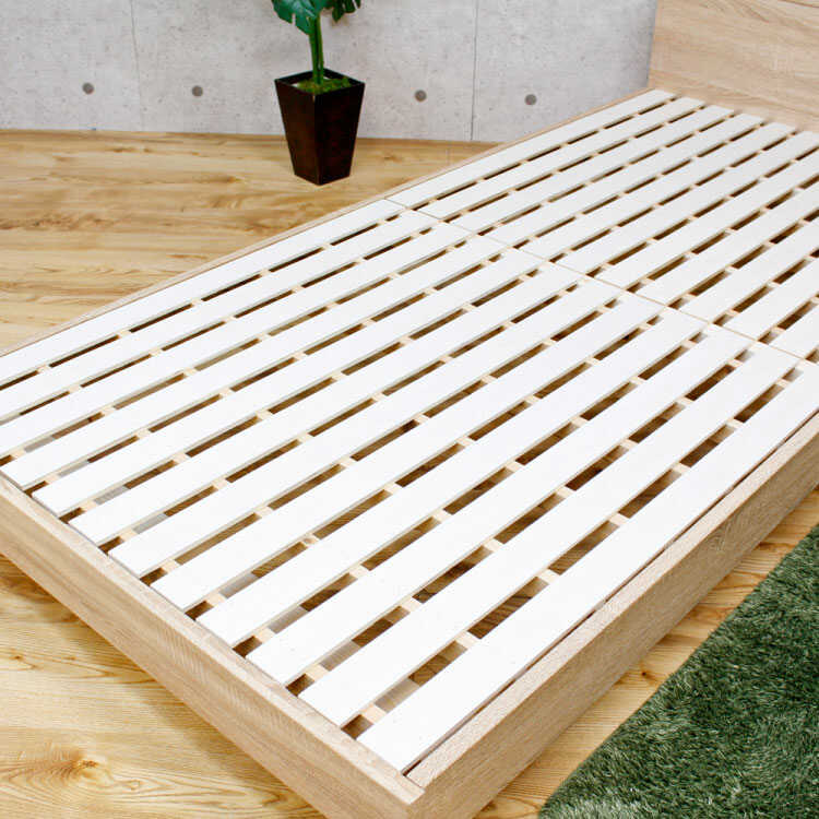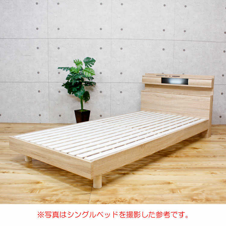 BE-3170 おしゃれ北欧セミダブルベッド(ナチュラル/照明ライト&2口コンセント付き/すのこ床)