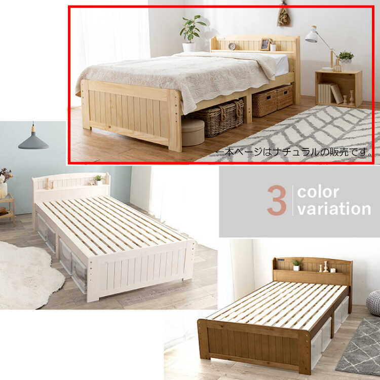 BE-3243 高さ調整可能・天然木製すのこセミダブルベッド(ナチュラル色/パイン材/床下収納スペース)※衣装ケース等は付属しません。