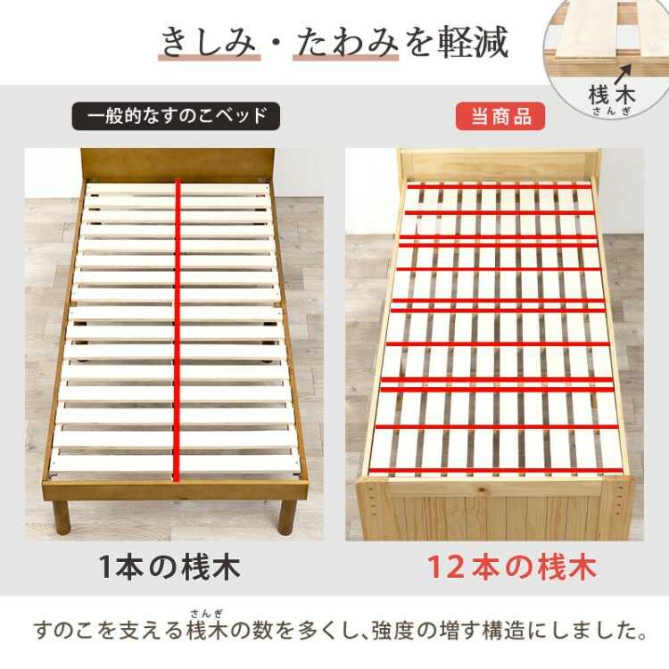 すのこを支える桟木を一般的なベッドより多めに使用することで強度を高めました。きしみ・たわみも軽減するため丈夫なつくりで安心です。
