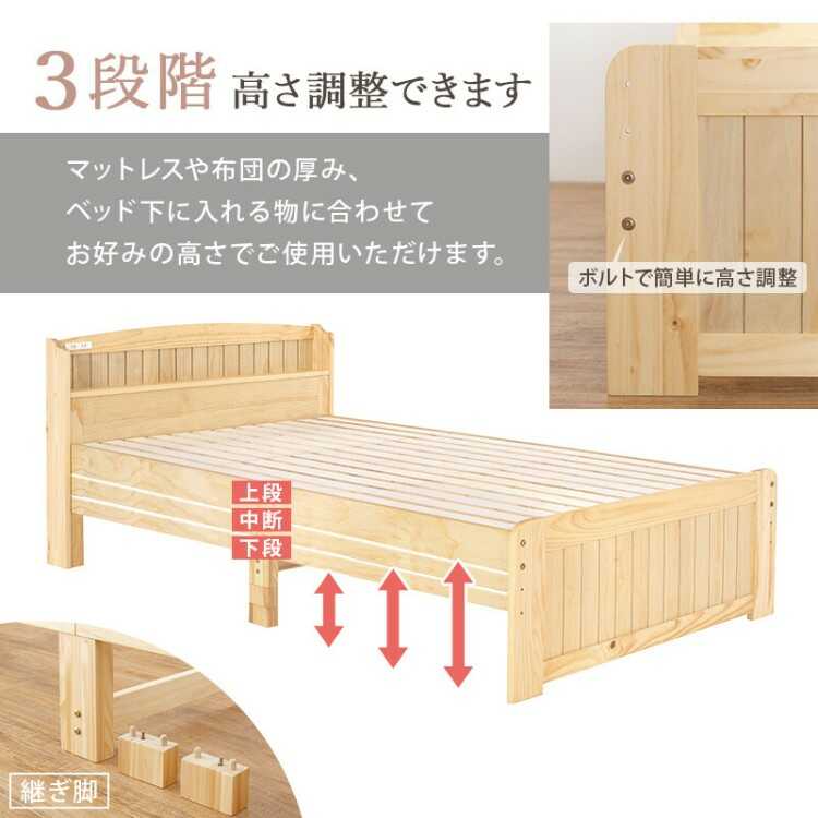 高さ調整可能・天然木製すのこセミダブルベッド(ナチュラル色/パイン材/床下収納スペース)