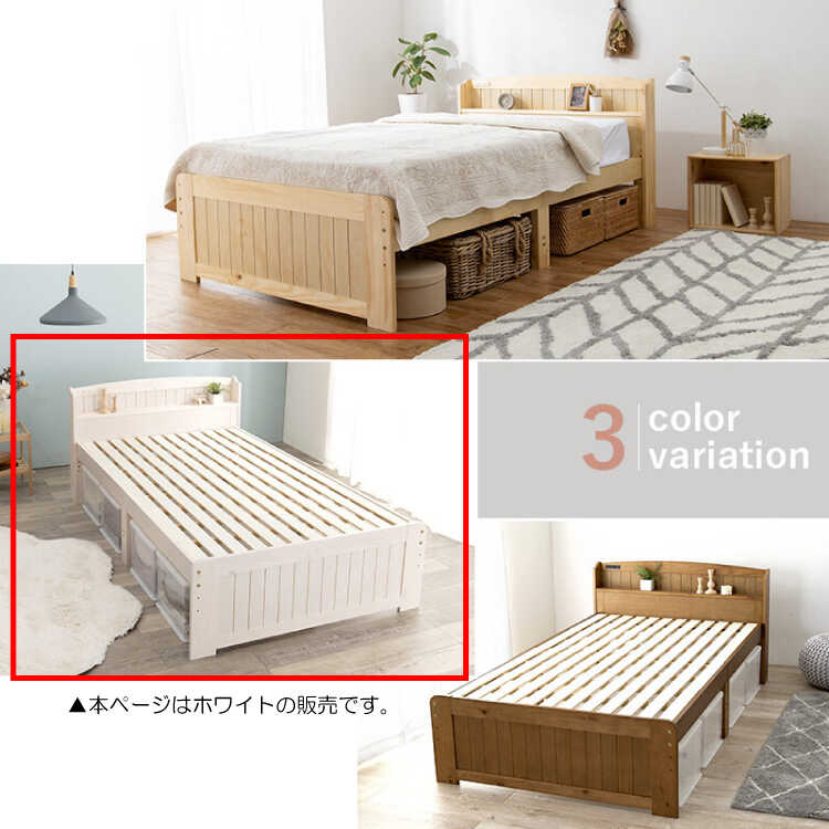 BE-3244 高さ調節可能・天然木製すのこセミダブルベッド(ホワイトウォッシュ/パイン材/床下収納スペース)※衣装ケース等は付属しません。