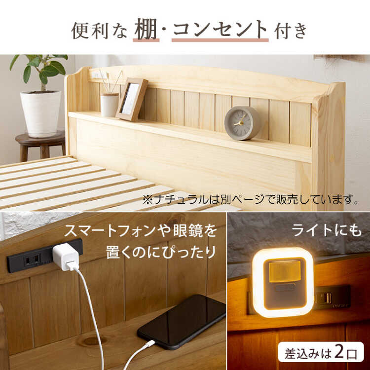 ヘッドボードにはスマートフォンの充電に便利な2口コンセントが付いています。