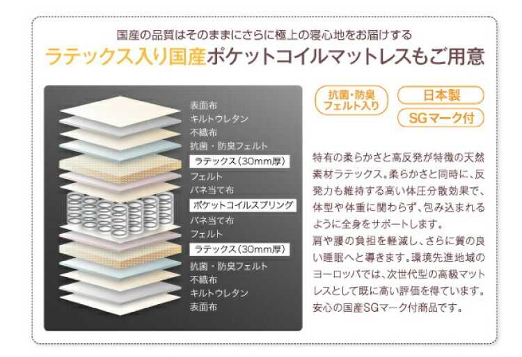 ラテックス入り国産ポケットコイルマット…高さ23cm(コイル数630)材質 プリント化粧板 構造仕様 お客様で組み立てていただく商品です