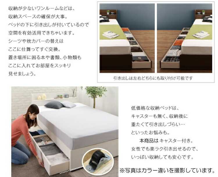 キャスター付き引き出し2杯(左右入れ替え可能)注意事項 ※写真はサイズ共通画像です。本ページはセミダブルベッド・ホワイトの販売です。小物等は付属しません。