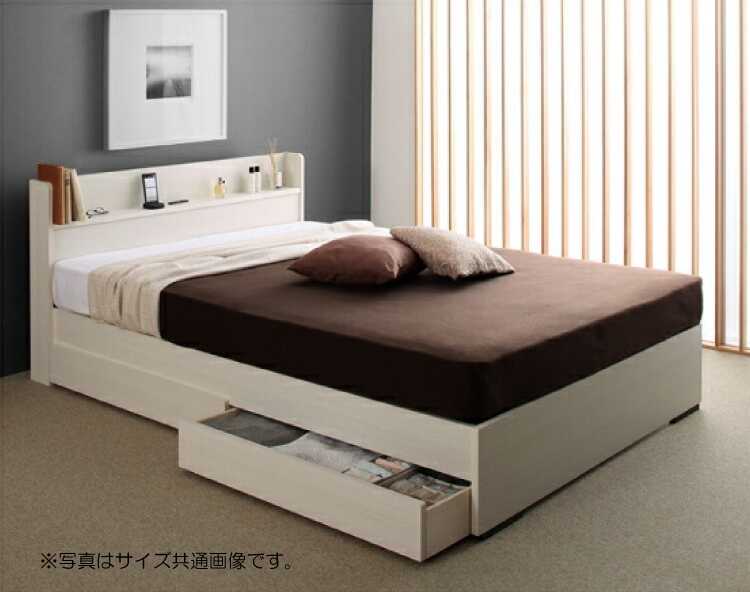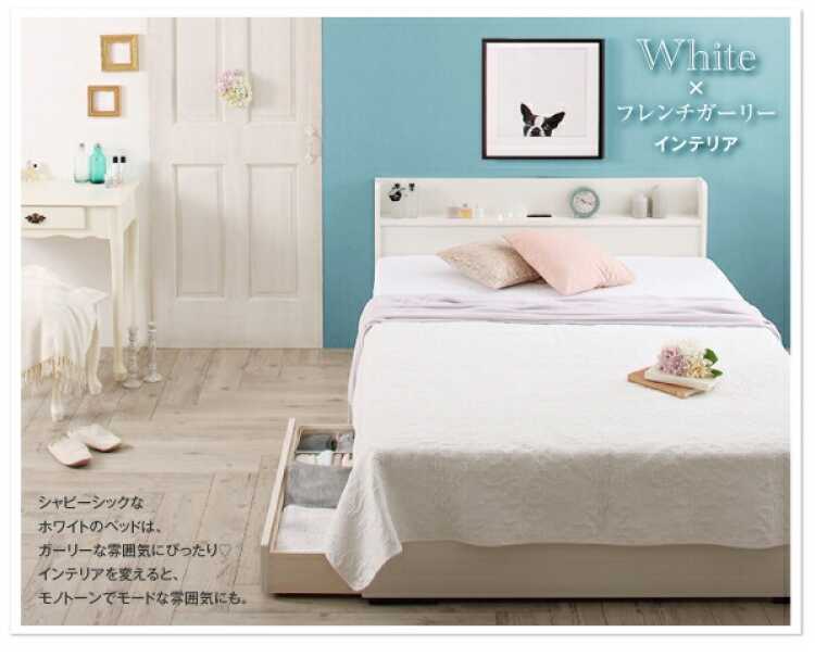組立て簡単な国産セミダブルベッド(床下収納付き・電源コンセント・白ホワイト)