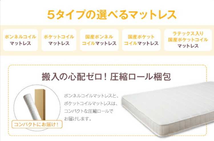 ⑥ラテックス入り国産ポケットコイルマットレス付き