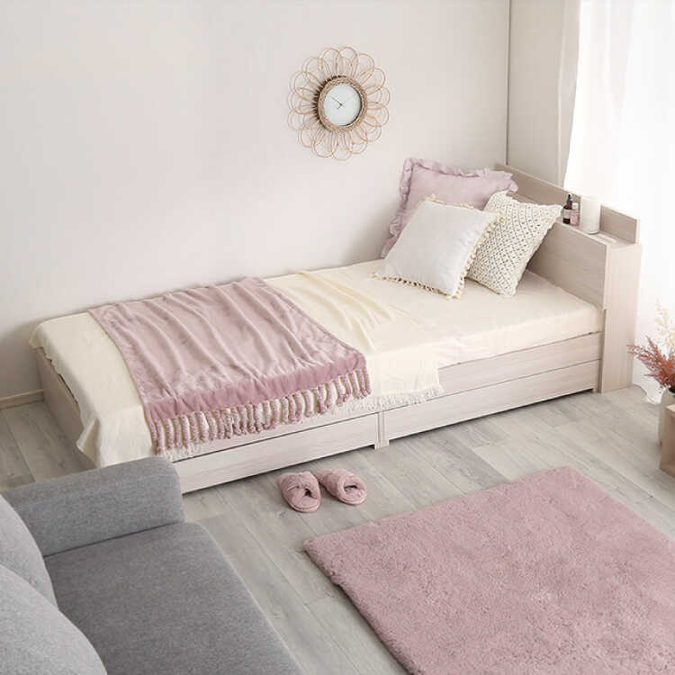 上品にデザインされた女性に人気のセミダブルベッドは、大人可愛いお部屋作りにぴったりです。立ち座りしやすいちょうど良い高さで、日中はソファーのようにお使いいただけます。別ページで同シリーズのサイズ・色違いを展開していますので是非合わせてご覧ください。(※本ページはセミダブル・ホワイトオーク調の販売です。)