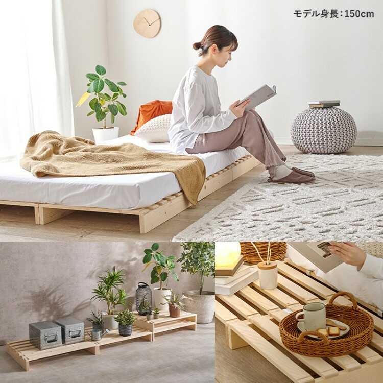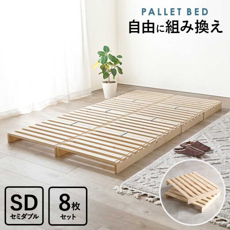 BE-3448 分割して持ち運べるパレットセミダブルベッド・北欧天然木製