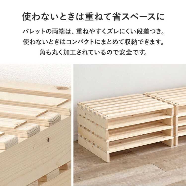 北欧産の天然木パイン製パレットセミダブルベッド(分割して持ち運べる・耐荷重350kg強靭設定)