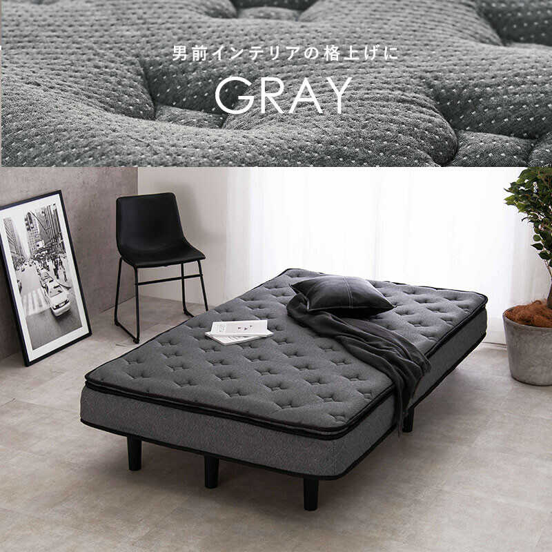 脚付きポケットコイルマットレス・セミダブルベッド(グレー)