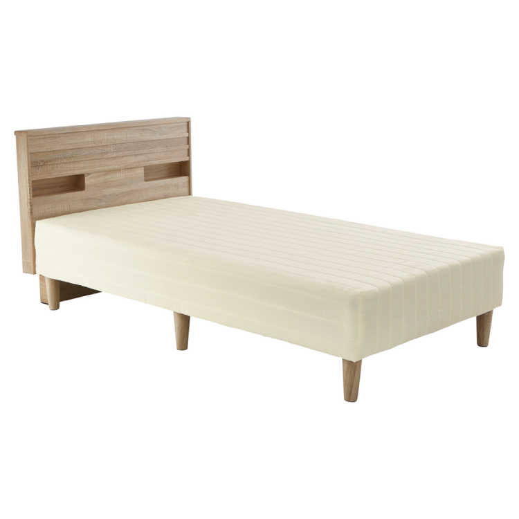 棚付きヘッドボード・ボンネルコイルマットレスベッド(シングル)ナチュラル