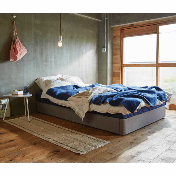 布ファブリック張りのシングルベッドはお部屋をスッキリ見せてくれるので、様々な方にお使いいただけます。