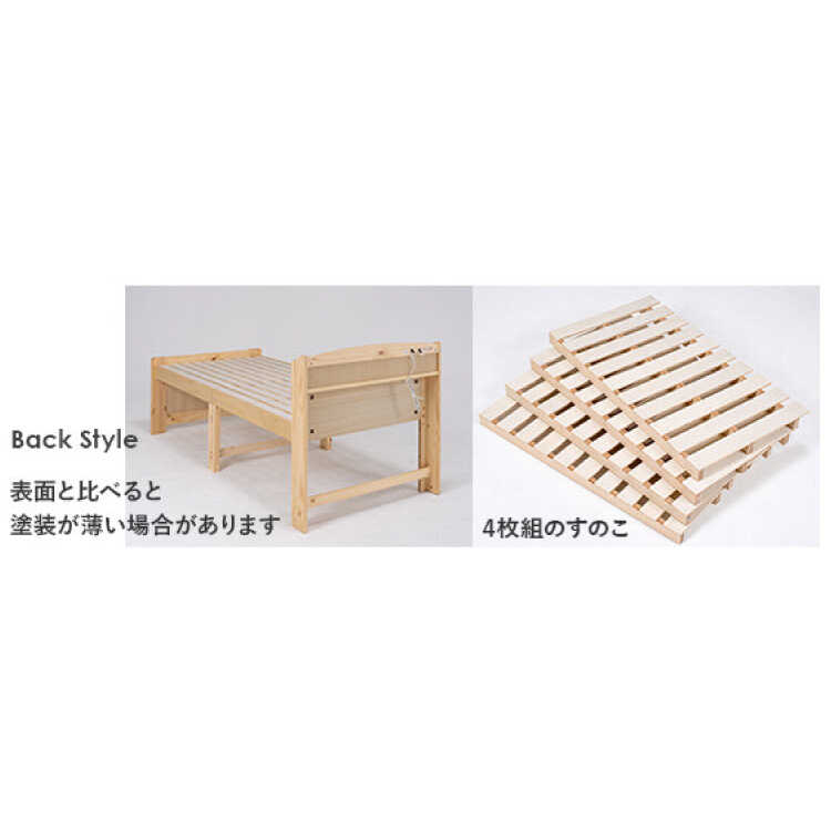 床板は通気性の良いすのこ仕様。汗や湿気を逃がして、布団やマットレスを清潔に保ちます。