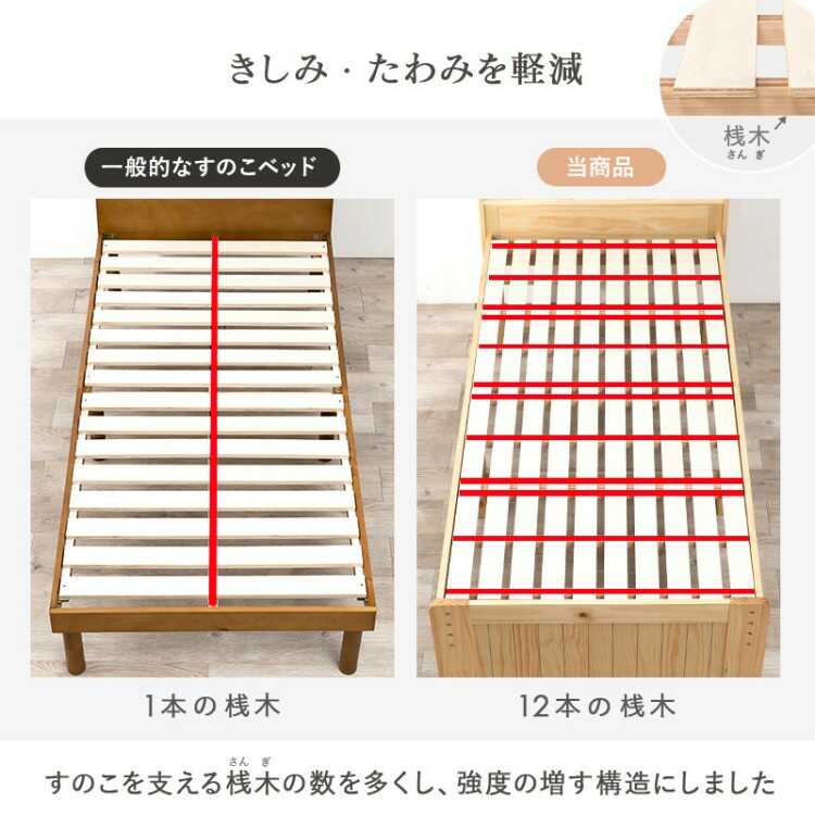すのこを支える桟木の数も増やすことできしみやたわみを軽減し、マットレスだけでなくお手持ちの敷き布団もお使いいただけます。