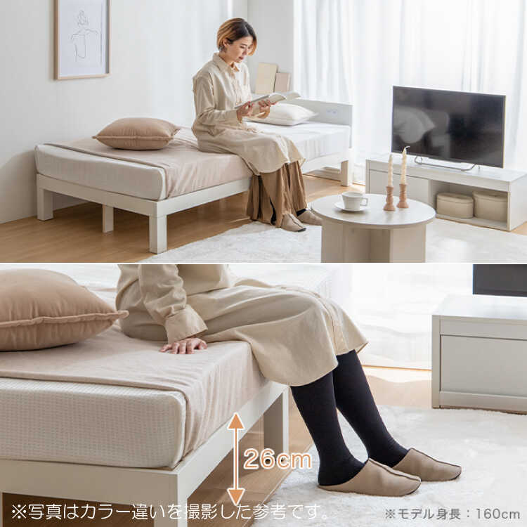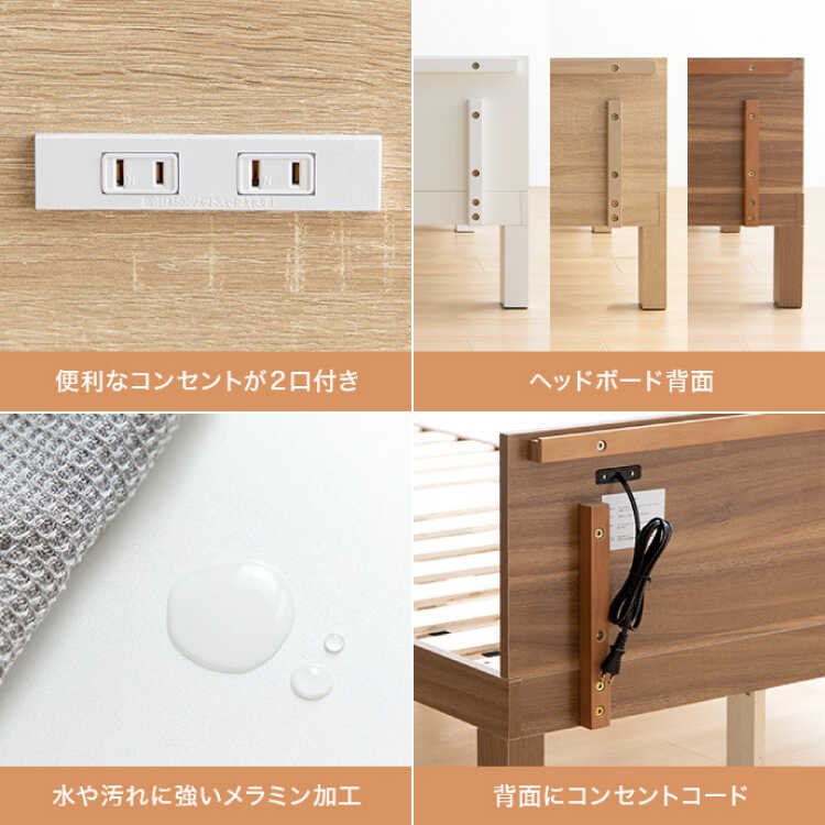 2口コンセント付き注意事項 ※シングルベッドフレームの販売です。小物等は付属しません。