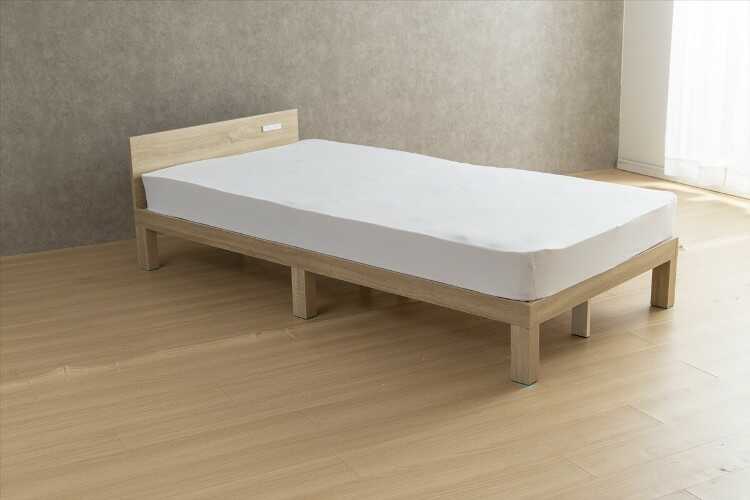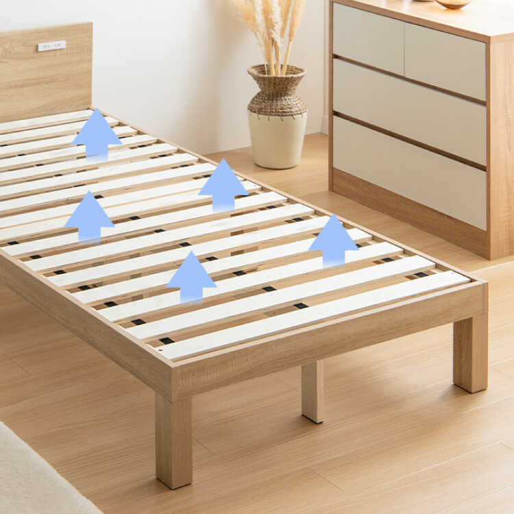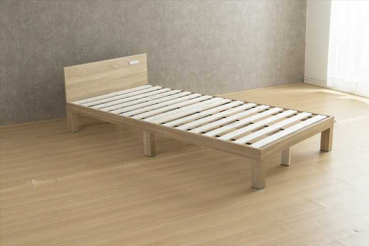 シンプル薄型すのこシングルベッド(ナチュラル色・電源コンセント付き)
