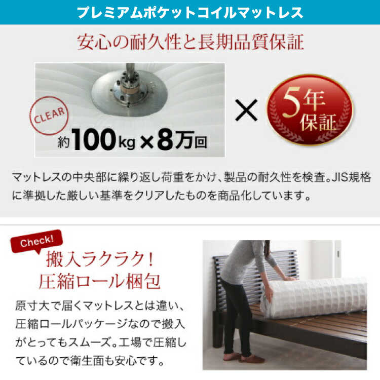 ⑤プレミアムポケットコイルマットレス付き