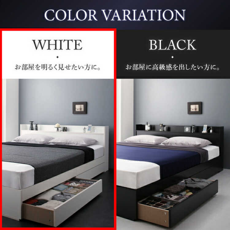 引き出し2杯付き(左右入れ替え可能)注意事項 ※写真はサイズ共通画像です。本ページはシングルベッドの販売です。小物等は付属しません。