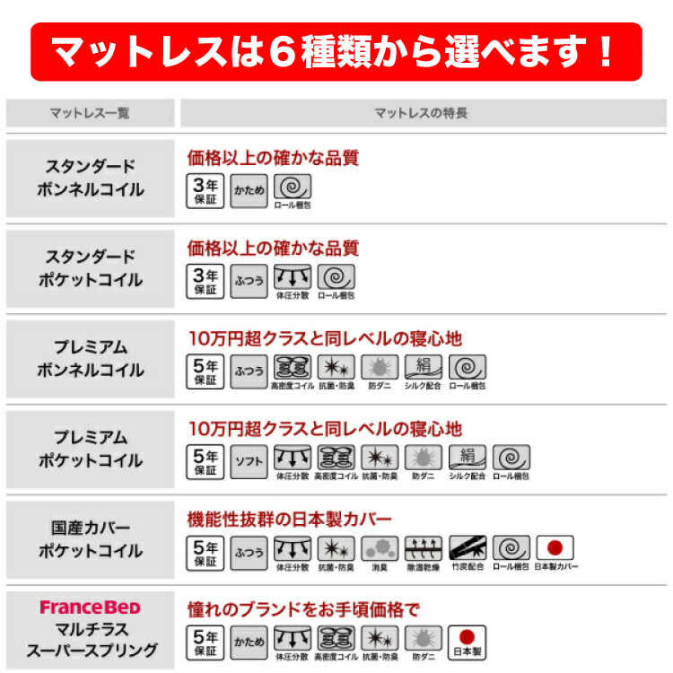 ※マットレスの保証はメーカー保証となります(販売店保証ではありません)