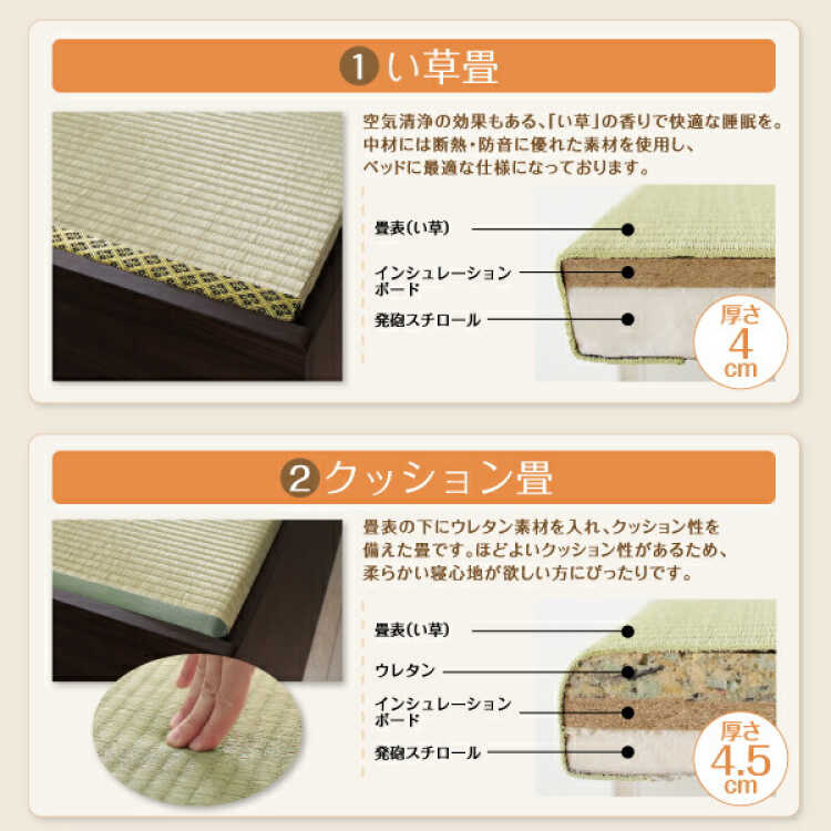 クッション畳…本い草、インシュレーションボード、チップウレタン