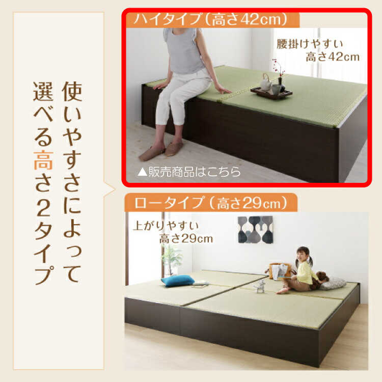 小上がりにもなる畳のシングルベッド(収納付き・ハイタイプ床高42cm・日本製)