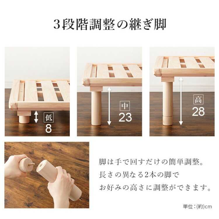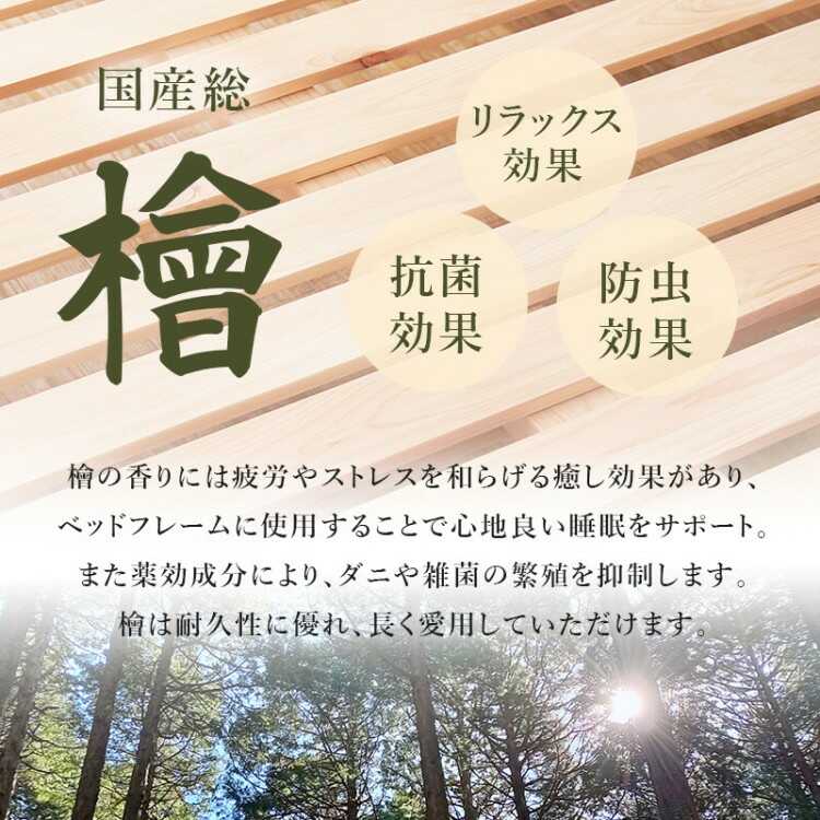 スノコだけでなく、フレーム、脚までパーツの全てに国産檜を使用しています(加工は海外工場です)。