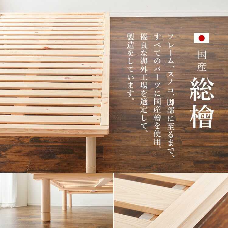 スノコだけでなく、フレーム、脚までパーツの全てに国産檜を使用しています(加工は海外工場です)。