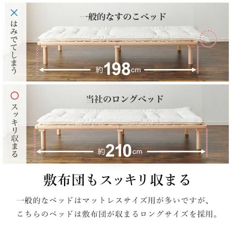 本商品は長さを210cmのロング設定にしていますので、敷布団がしっかりと収まります。