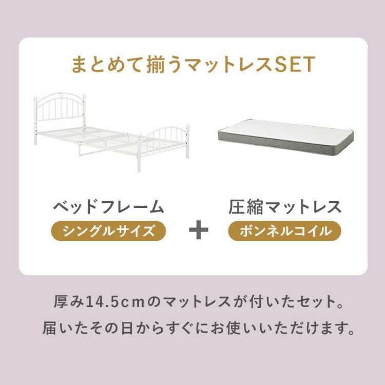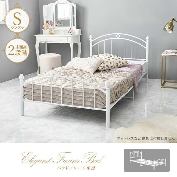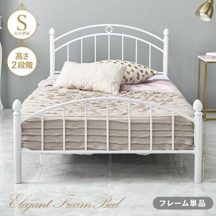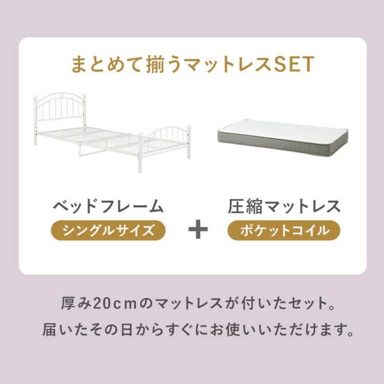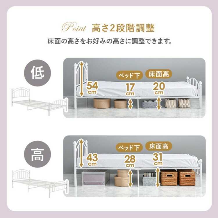 高さ2段階調節・白ホワイトのスチール製パイプベッド(シングルサイズ・マットレスが選べる)